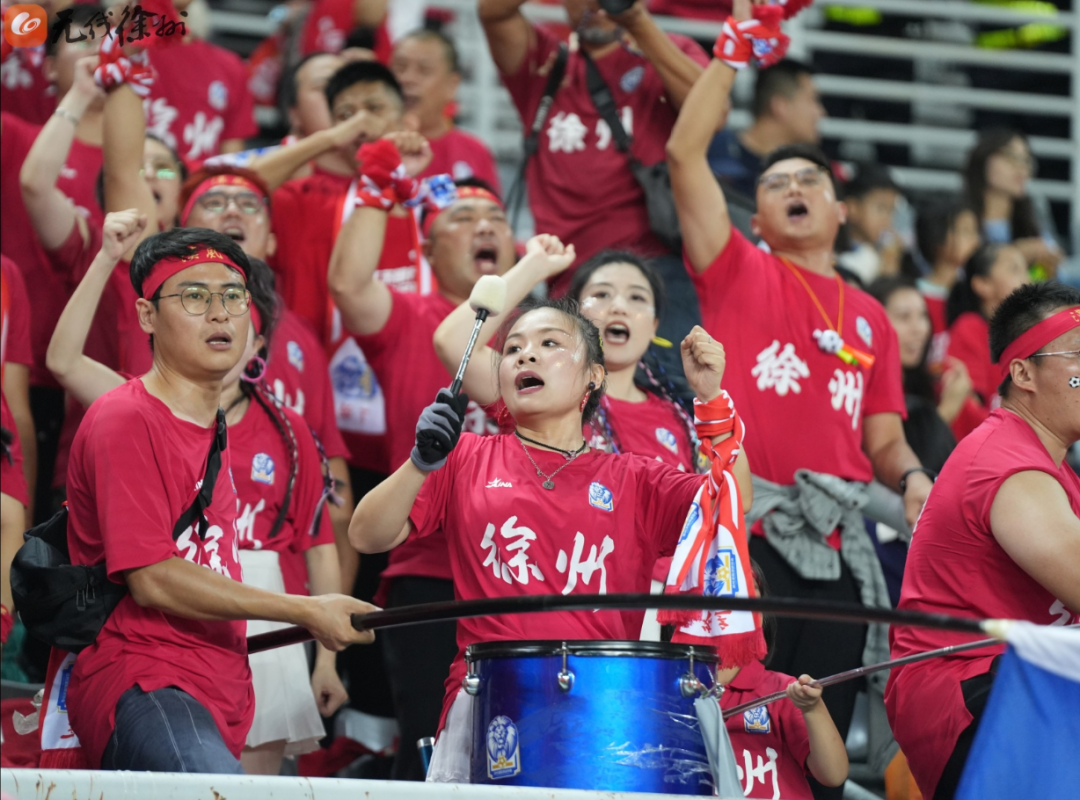 徐州奥体中心瞬间沸腾,红色人浪在看台上翻滚,球迷们的欢呼声此起彼伏。