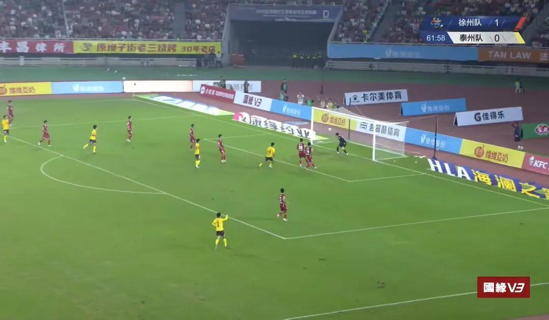 第61分钟,泰州队通过一次精妙的配合,由9号队员樊超头球攻门,迅速扳平比分,1:1的比分保持到常规时间结束,比赛进入残酷的点球大战。