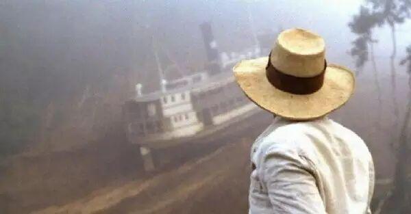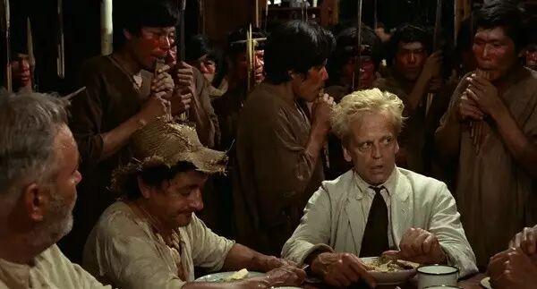 具有决定性的事实是,赫尔佐格不急着讲述他的故事;他寻求的不是情节的推进,而是画面幻像的共鸣。这艘船冲击撞入翻涌着致死急流的死亡之河的场景,比任何常规的手法都看起来更令人毛骨悚然。