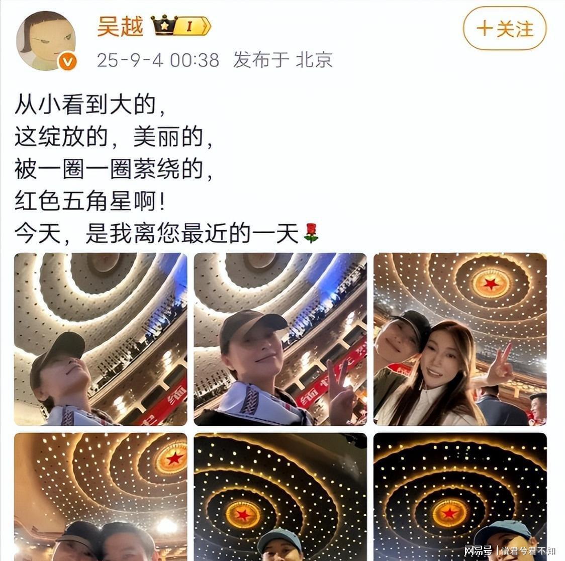 虽然不是国家话剧院的演员,但吴越却仍旧得到“93阅兵文艺晚会”的邀请,参演节目为情境诗朗诵《这束光》。