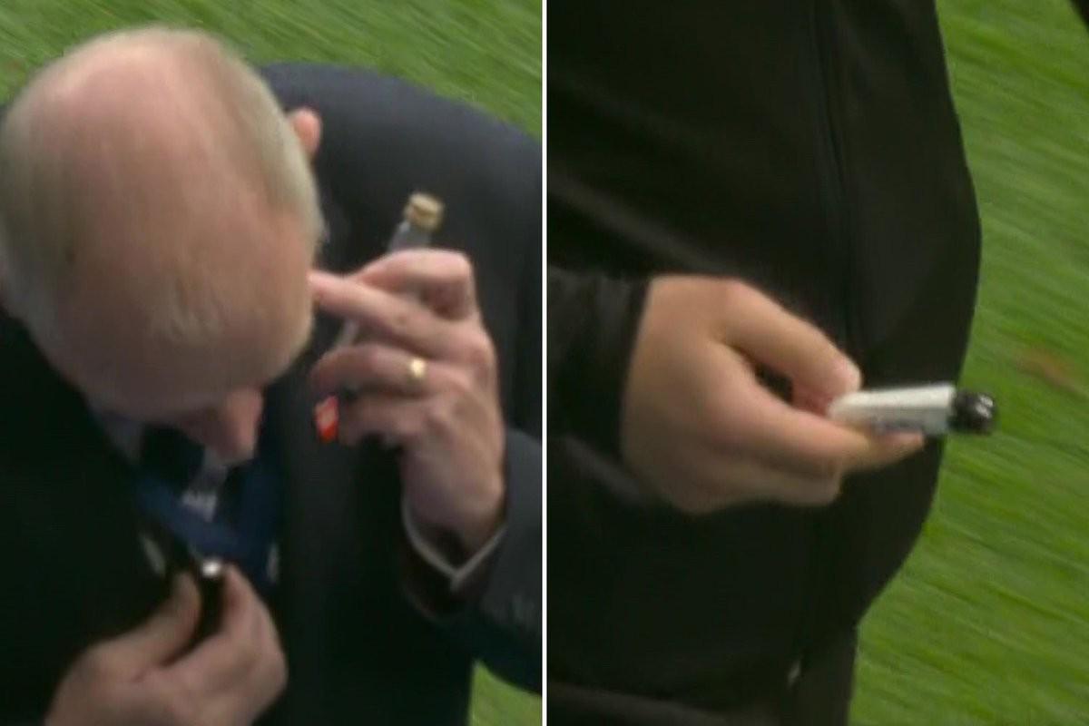 电视转播画面清晰地记录下了这一不文明行为。画面中,一名身穿黑色上衣的裁判从草坪上捡起了一个白色打火机,而另一画面则显示,疑似烈性酒瓶也被掷入了场内,情况十分危急。