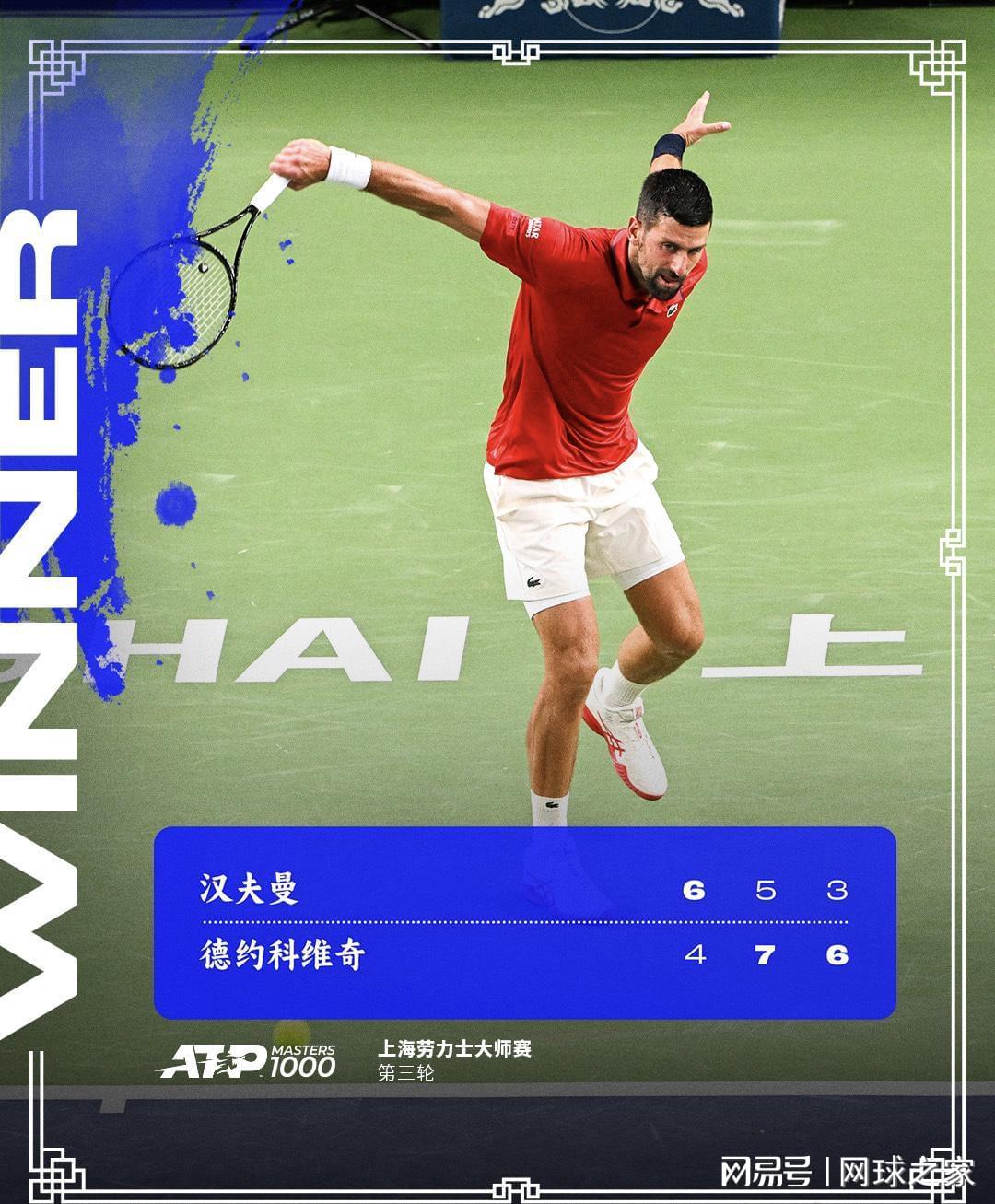 在上海大师赛第三轮夜场中心球场的灯光下,38岁的德约科维奇再次书写了传奇篇章。面对从资格赛突围的德国选手汉夫曼,德约在首盘4-6落后的不利局面下,展现出了24个大满贯冠军得主的深厚底蕴。次盘僵持至6-5的关键时刻,德约的冠军之心再次闪耀,他在对手非保不可的第12局完成致命破发,以7-5扳平大比分。