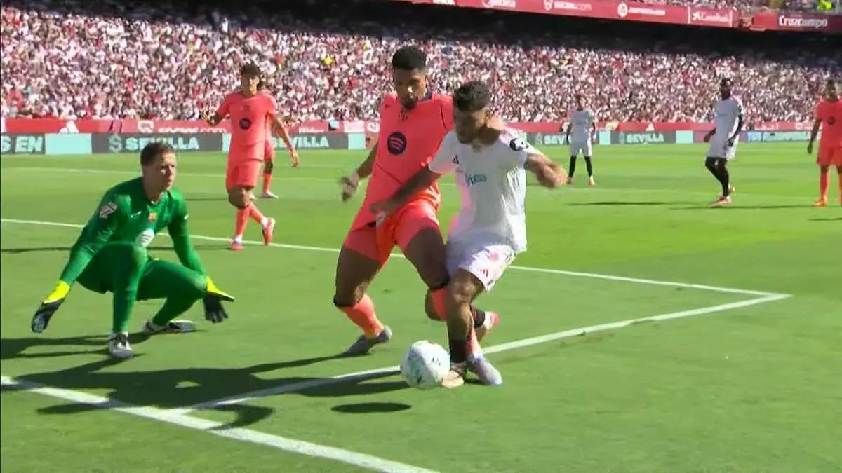 在西甲第8轮的一场焦点战中,巴塞罗那客场以1-4的比分不敌塞维利亚,遭遇了一场苦涩的失利。比赛进行到第13分钟时,场上风云突变,巴萨后卫阿劳霍因一次犯规被主裁判亚历杭德罗-穆尼斯判罚了点球,这一决定瞬间点燃了场上的火药味。