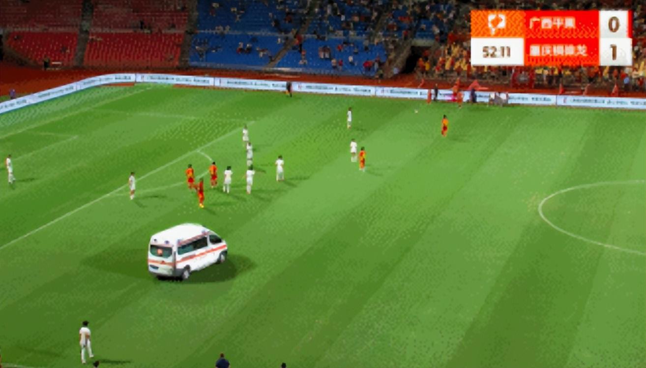 然而,这场比赛的真正看点并不在于比分,而在于场上的意外情况。第50分钟,广西队的阿萨莫阿在比赛中遭到对方球员张志雄的暴力犯规,被推倒后直接撞在了场边的广告牌上,场面十分惊险。随后,救护车紧急进场,阿萨莫阿被换下场,而犯规的张志雄则吃到了一张黄牌。