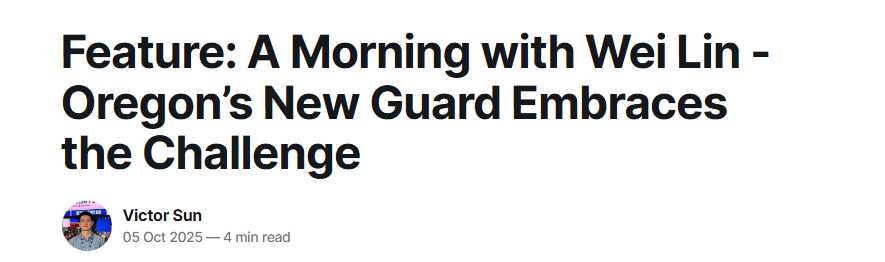 北京时间10月6日,NBA知名记者Victor Sun撰文,深度报道了林葳在俄勒冈大学男篮的最新动态,让我们一同走进这位年轻球员的NCAA逐梦之旅。