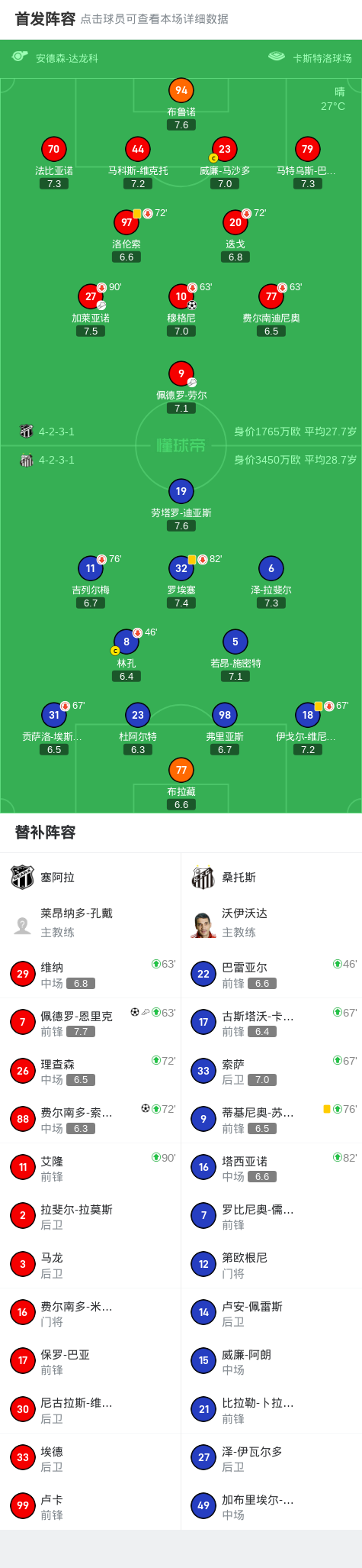 比赛临近尾声,塞阿拉的攻势依旧不减。下半场补时第4分钟,佩德罗-恩里克再次成为关键先生,他在右路突破后送出妙传,费尔南多-索布拉尔得球后果断起脚,皮球应声入网,为塞阿拉锁定胜局。最终,全场比赛结束,塞阿拉以3-0的比分完胜桑托斯。