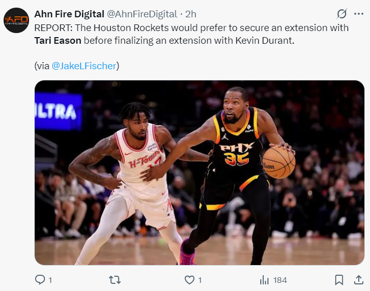 据BR记者杰克-费舍尔报道,塔里-伊森正在与火箭队进行提前续约的谈判。伊森的续约优先级高于凯文-杜兰特,火箭队希望在续约伊森后再与杜兰特商讨一份两年的提前续约合同。由于伊森的提前续约时限10月20日已经临近,双方都在加快谈判进程。