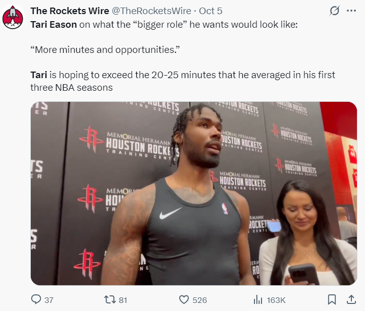 一天之前,伊森在训练后接受了采访,他表示自己希望在25-26赛季扮演更大的角色。此前三个赛季,伊森场均只有20-25分钟的出场时间,他希望新赛季场均登场时间可以超过25分钟,为球队做出更大的贡献。