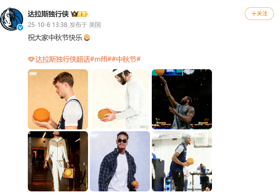 北京时间10月6日,达拉斯独行侠队在社交媒体上发布了一组特别图片,向全球球迷送上中秋节祝福。此次发布的图片中,独行侠队的三位状元——欧文、浓眉(安东尼·戴维斯)和弗拉格齐齐出镜,展现了球队的强大阵容和团结氛围。