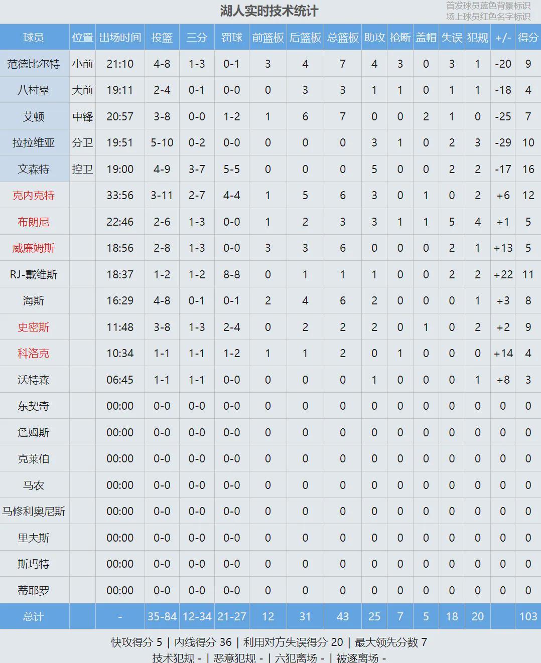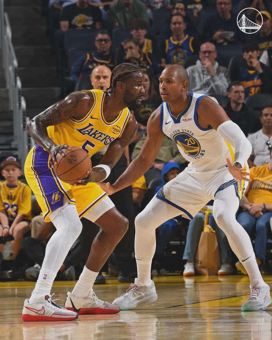 在防守端,艾顿虽然进攻时有点黄油手,但面对勇士的五小阵容,他在防守端展现了强大的威慑力,多次干扰追梦和巴特勒的上篮。科尔也适时换上霍福德和波斯特,增加内线高度。上一场10中2的克内克特,今天上半场手感回暖,湖人长时间保持微弱的领先。