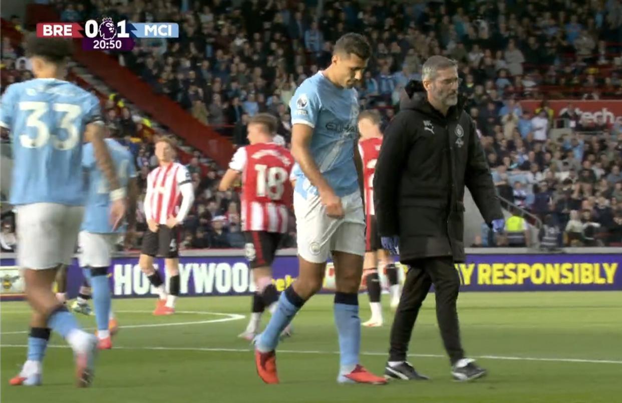 罗德里的伤退对曼城影响巨大。在罗德里下场后,瓜迪奥拉换上尼科-冈萨雷斯,但球队在中场的控制力明显下降。在布伦特福德主帅亨德森的指挥下,小蜜蜂的两个边翼卫达姆斯高和亚尔莫柳克多次威胁曼城肋部,沙德和蒂亚戈也频繁前插,试图给多纳鲁马制造威胁。