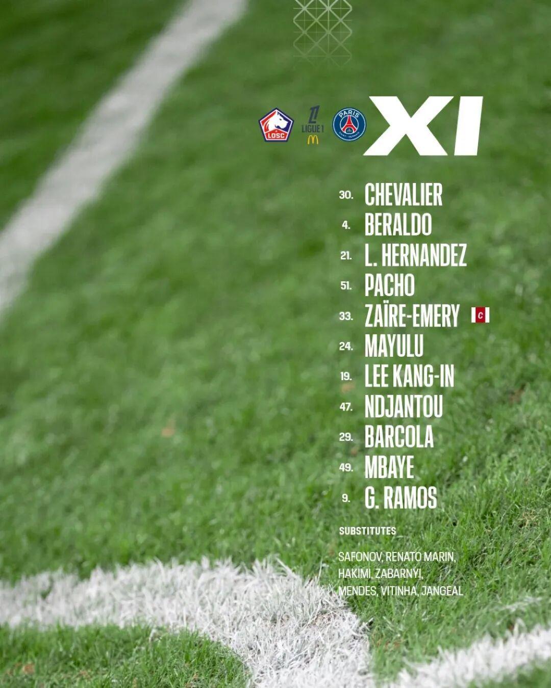 北京时间10月6日凌晨2:45,法甲联赛第7轮焦点战在里尔主场打响,巴黎圣日耳曼(大巴黎)客场挑战里尔队。本场比赛埃梅里佩戴队长袖标领衔出战。
