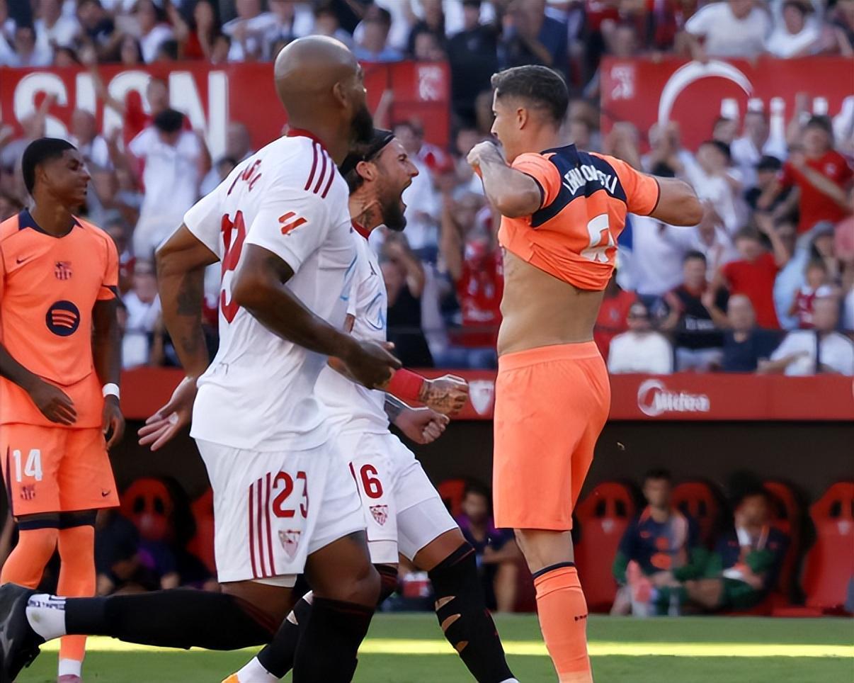 本轮前,巴萨是西甲唯一保持不败的球队,且凭借皇马此前1-3负于马竞的赛果登顶积分榜。然而客场对阵塞维利亚的比赛,巴萨遭遇滑铁卢。上半场第13分钟,阿劳霍在禁区内与伊萨克-罗梅罗对抗时动作过大,裁判通过VAR判罚点球,老将桑切斯主罚命中,塞维利亚1-0领先。