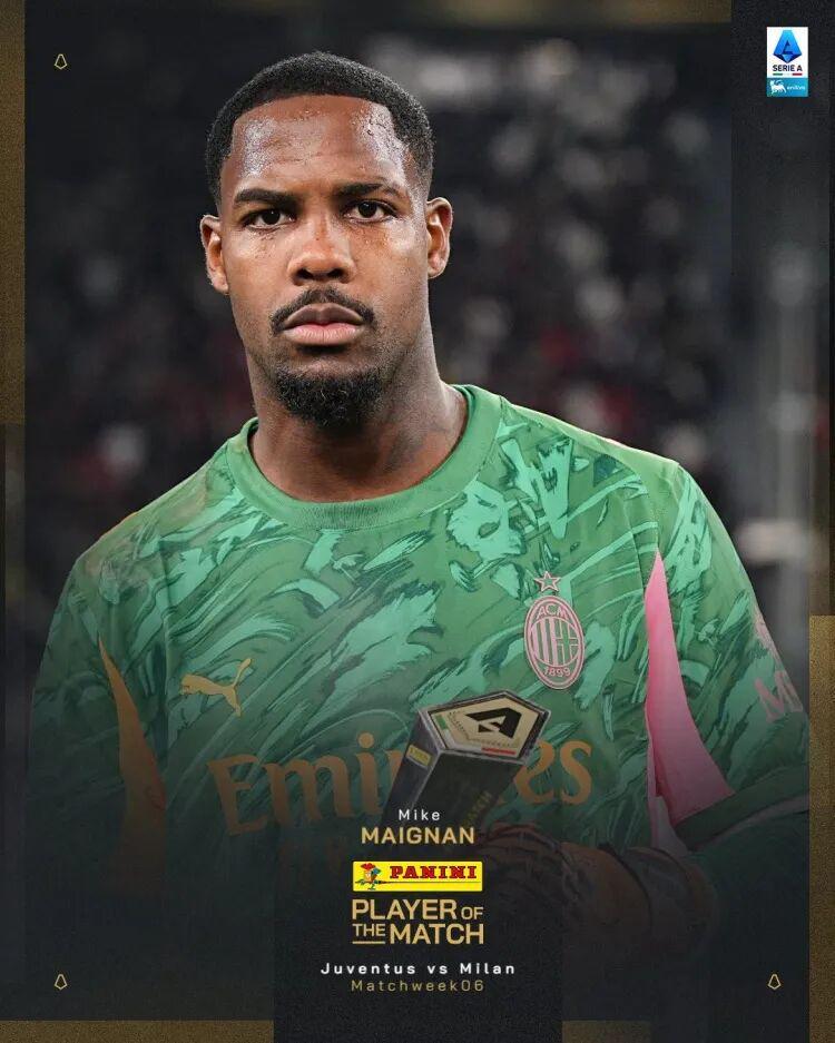 意甲第6轮比赛,迈尼昂完成零封,米兰客场0-0战平尤文。迈尼昂此役做出3次扑救,力保球门不失,意甲官方宣布,他当选本场比赛最佳球员。