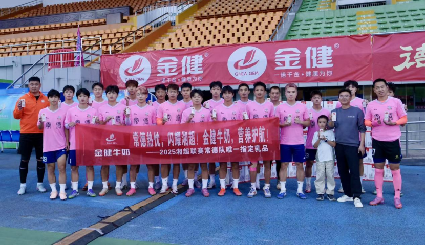 在赛场之外,来自本土企业的温暖与守护同样令人感动。金健米业旗下金健乳业以实际行动支持常德队,作为扎根常德、辐射全省的本土乳企代表,自10月5日起,在整个湘超常德赛区期间,金健乳业每日为常德队队员提供一瓶金健纯鲜牛奶,为球员们的每一次奔跑与拼抢注入健康能量。