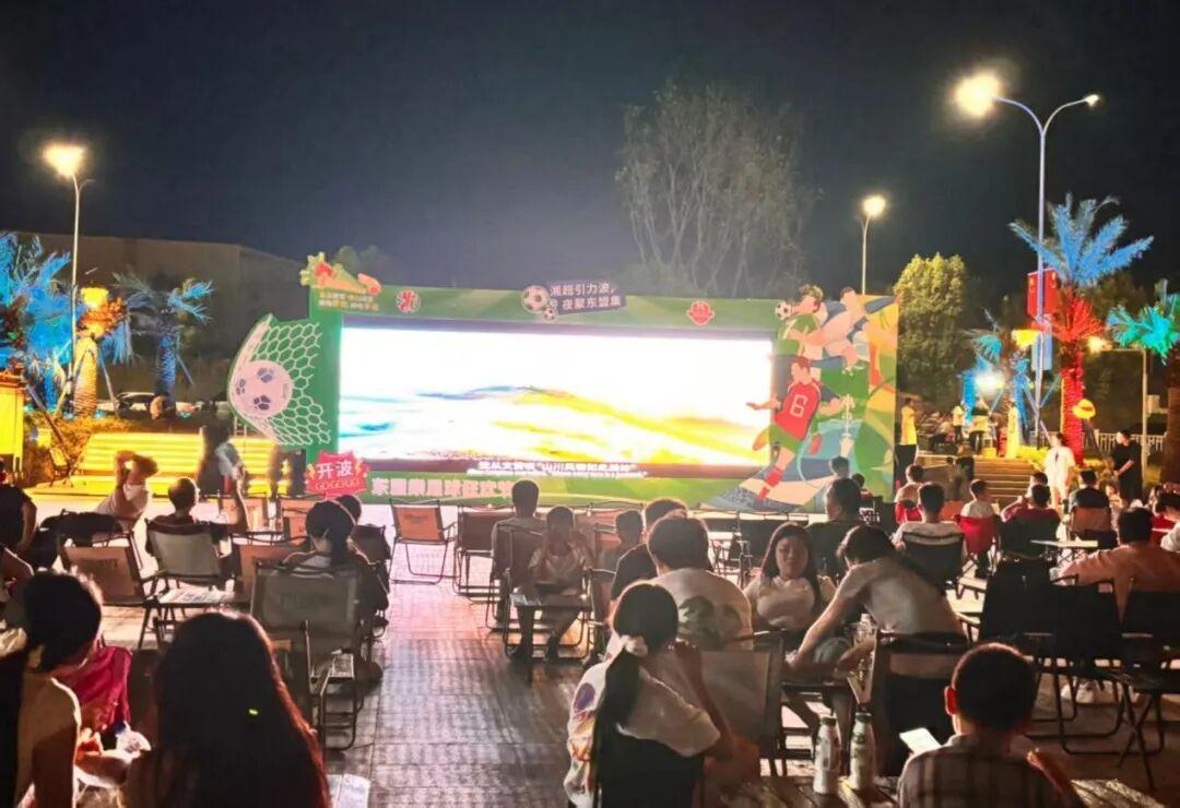 (榆树湾户外大屏,市民游客观看‘湘超’赛事。丁钢成 摄)