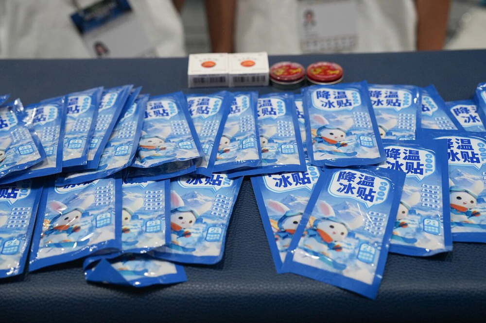 除了“冰力支援”与“风系加持”,指挥部还在球迷广场、中央场馆环廊(10号玻璃门)两处咨询服务中心,免费向观众提供清凉油和冰宝贴。自10月5日起,更在中央场馆环廊增设了冰袋领取点,观众可按需取用。为避免观众暴晒,工作人员还为观众休息区、户外就餐区的桌椅加装了遮阳伞。