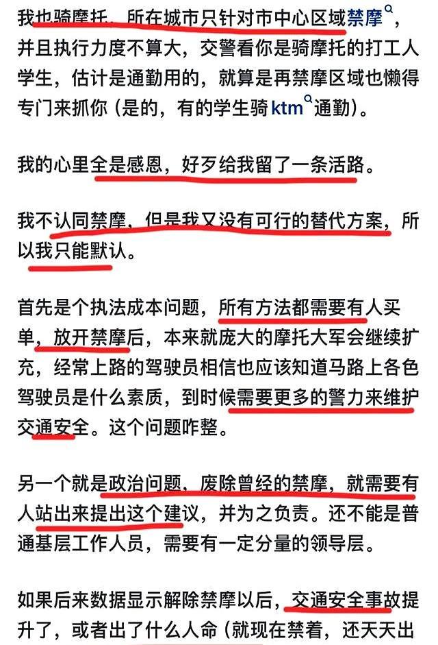 路边小店老板搅着绿豆汤说:“这摩托就该管,不然出事谁负责?”对于禁摩政策,网友们看法不一。有网友说:“摩托车要是真能管住,不用禁这么狠。偏偏有些人就是不听劝,出事就麻烦。交警管一天,第二天又来。”