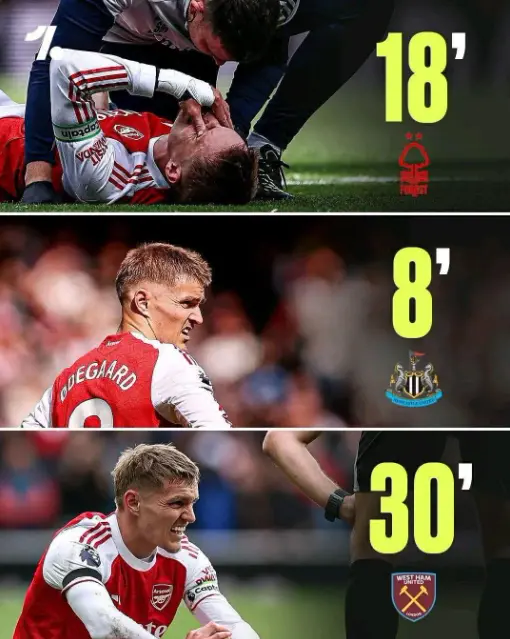 本轮与西汉姆联的比赛,厄德高仅踢了30分钟便因伤退场。赛后,阿森纳官方宣布厄德高左膝内侧副韧带受伤,回归时间未定。过去一年,厄德高可谓“伤痕累累”,本赛季更是如此。统计数据显示,厄德高成为英超历史上首位连续三场联赛首发都在半场前因伤被换下的球员。