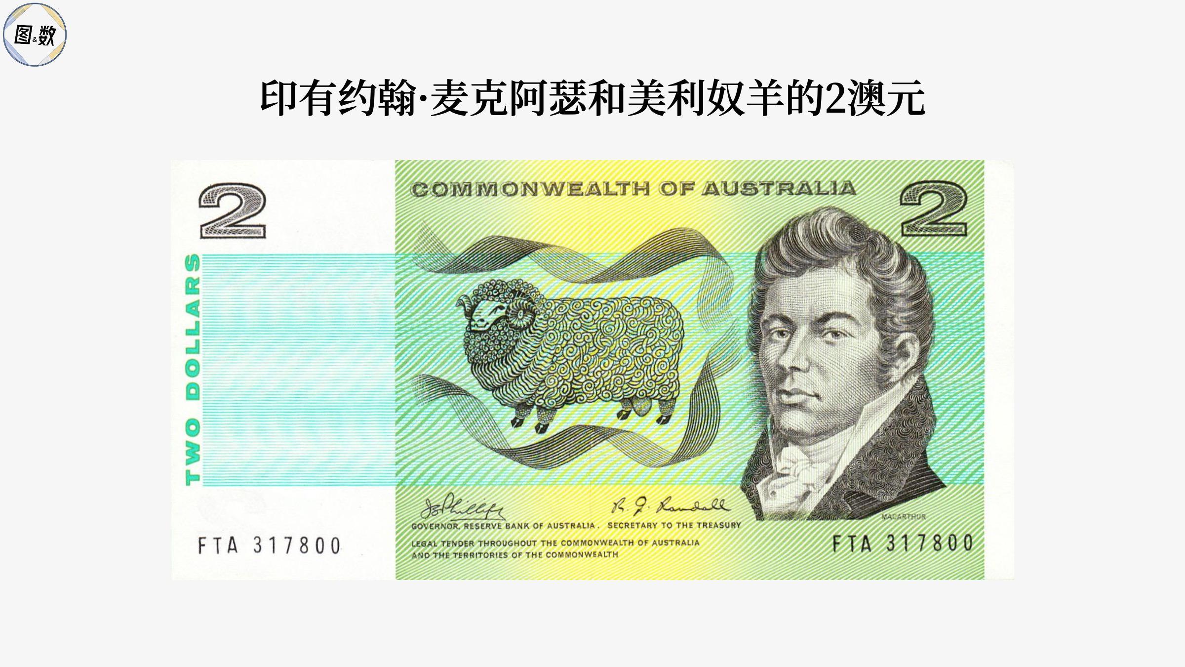 为纪念约翰·麦克阿瑟在美利奴羊产业化过程中的突出贡献,澳大利亚不仅设立了麦克阿瑟地区,还在1966-1988年发行的2澳元纸币上印上了他的画像和美利奴羊的图案。