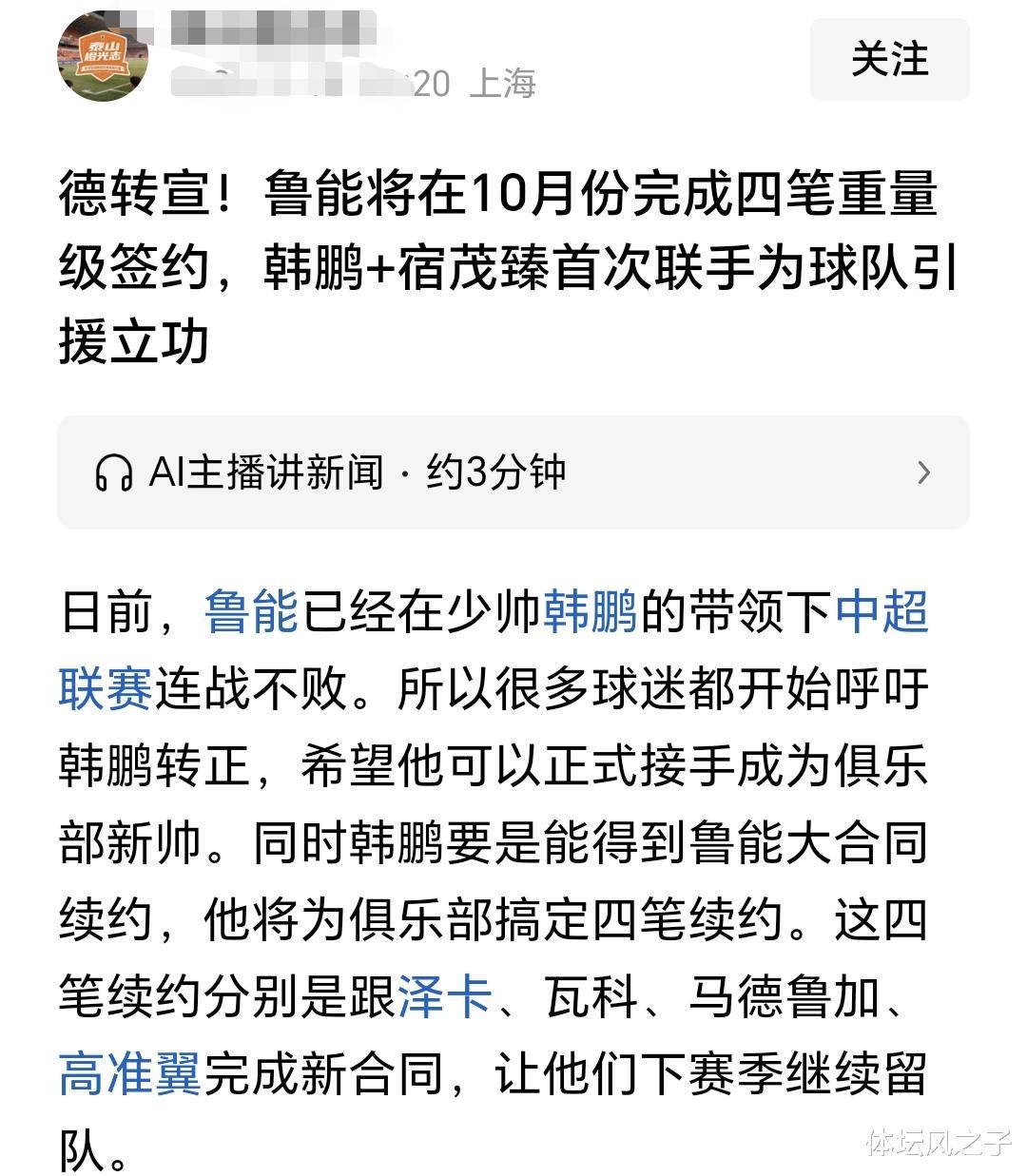 在韩鹏的出色带领下,外界对于他转正的呼声也越来越高。只要韩鹏能够继续保持这样的表现,下赛季他大概率会迎来正式的转正,成为泰山队的主教练。这对于泰山队来说,无疑是一个重大的利好消息,因为韩鹏的执教能力和对球队的了解,已经得到了广泛的认可。