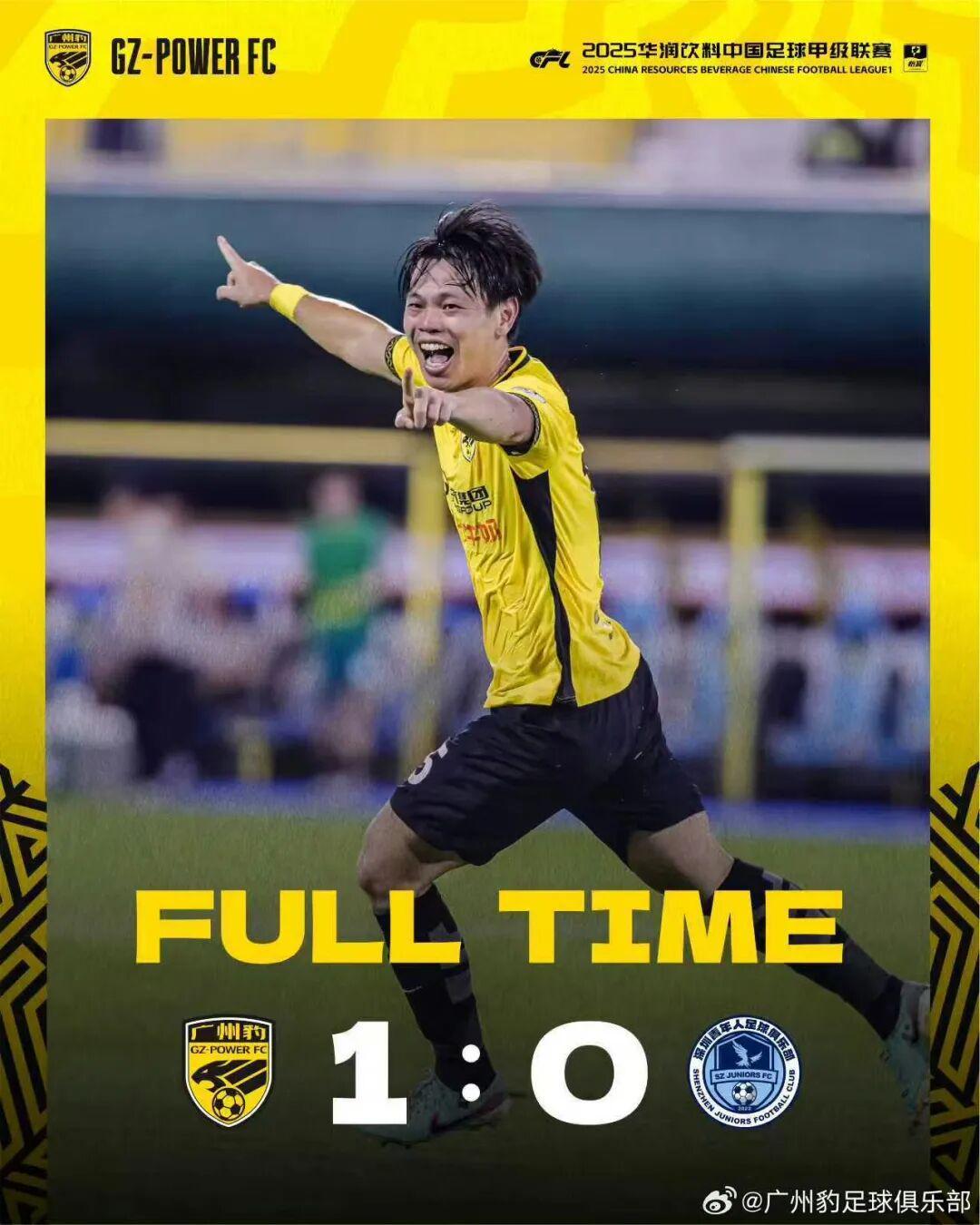 昨晚,2025赛季中国足球甲级联赛第25轮迎来一场焦点对决——越秀山体育场上演了备受瞩目的“广东德比”。志在冲超的广东广州豹以1-0的比分击败深圳青年人,成功拿下这场关键战役的三分,继续对联赛前二发起有力冲击。