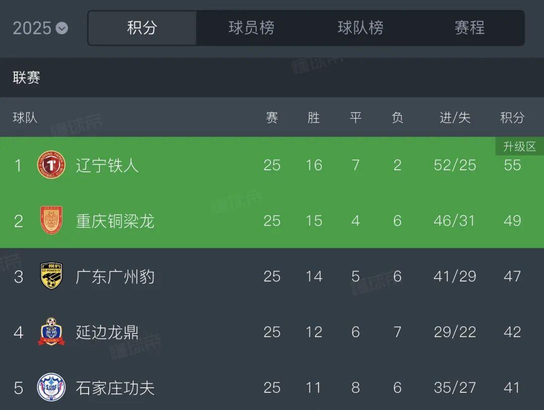 在25轮比赛过后,广东广州豹以47分的成绩排名联赛第三,仅落后第二名的重庆铜梁龙两分。这样的积分差距让广东广州豹的冲超之路充满了悬念和期待。