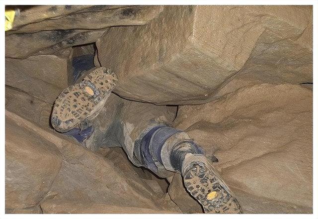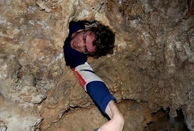 黑暗瞬间裹住了他,他试着往后退,可身体像被焊在了岩壁里,连手指都挪不开,这时他才发现,自己钻进来的是条死路,而他现在是头朝下的姿势,整个人被卡在一个只有25×45厘米的缝隙里,下不去,也上不来。