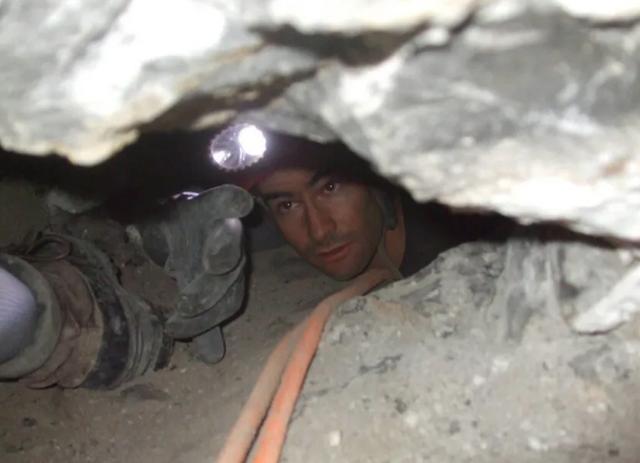 后来更多救援人员赶来了,加起来有十几个人,他们蹲在狭窄的通道里,商量着办法:用小型钻井机挖岩壁?钻了一个多小时,只在岩石上留下几个浅坑,根本没用。