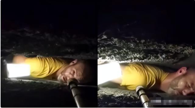 所有人都屏住了呼吸,绳子慢慢绷紧,约翰的身体开始往上挪,朋友在旁边喊“再加把劲!快出来了!”