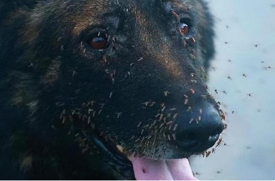 犬类的鼻头常年湿润裸露,是蚊虫最容易叮咬的部位之一,而一旦成群蚊虫发起“围猎”,这些军犬几乎毫无招架之力。
