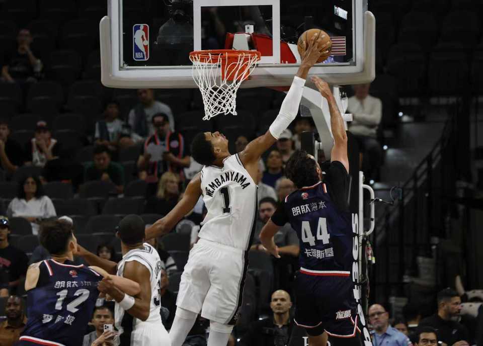 比赛开始,广州男篮的两位本土主力郭艾伦与徐昕未随队出征,新援陈国豪领衔本土阵容出战。首节开局,文班亚马便引领马刺率先取得14-8的领先优势。奥拉迪波包揽了广州男篮的前8分,帮助球队反扑追到只差3分。然而,马刺随后连中三分,扩大领先优势至24-14。首节比赛结束,马刺以34-22领先广州12分。