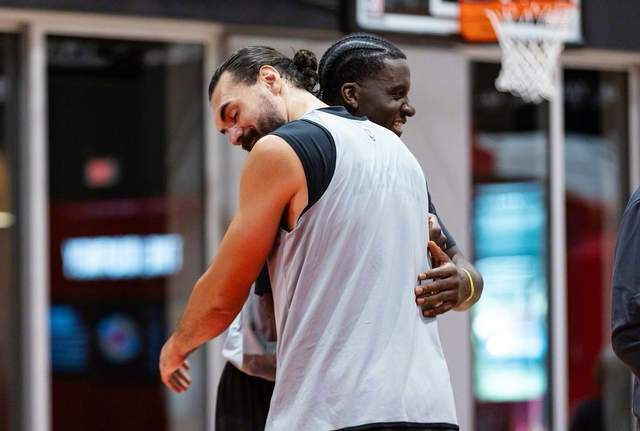 首发阵容方面,乌度卡选择了相对常规的配置。目前,一号位首选除了谢泼德外,并无其他合适人选。作为上赛季的高顺位新秀,谢泼德本场表现可圈可点,明显取得了进步。乌度卡为他量身打造的阵容搭配,让第二阵容与双塔同时在场,有效弥补了他在防守端的不足。谢泼德在进攻端的变化尤为显著,无论是传球还是外线出手,都显得果断而自信。挡拆后迅速杀入内线造成杀伤,成为他本场的招牌动作。尽管在防守端仍因对抗问题被针对,但他的投射和梳理进攻能力已足以胜任首发控球后卫的角色。若杜兰特能够出战,谢泼德的优势将得到更充分的发挥。