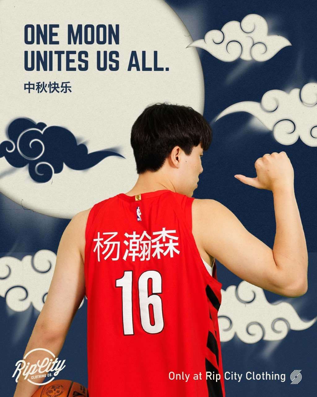 与此同时,开拓者官方还送上了温馨的中秋祝福:“一轮明月将我们连接在一起。这款球衣现已发售,售完即止。”这句话不仅表达了节日的祝福,也巧妙地宣传了新推出的中文版球衣。