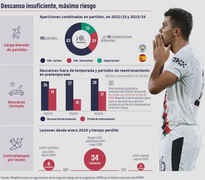 皇马球星巴尔韦德的情况同样令人担忧。在2024-25赛季,他累计出战72场比赛,登场时间达6676分钟,为全球所有球员之最。其中81%的比赛为连续作战,即两场比赛间隔不足5天。在长达数月的时间里,他每3至4天就要经历一场高强度比赛。医疗专家一致认为,这样的比赛节奏完全不可持续,长期下去将对球员的身体造成不可逆的损伤。