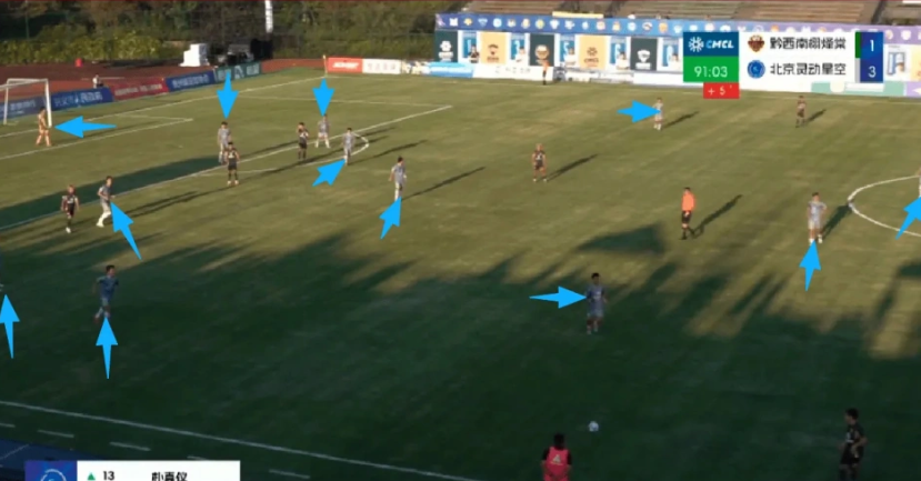 而黔西南栩烽棠队对阵北京灵动星空队的比赛,则是在10月5日上演了另一出荒诞剧。比赛第90分钟,北京灵动星空队以3-1领先黔西南栩烽棠队,眼看比赛即将结束,北京灵动星空队做出了换人调整,一口气换了3个人。然而,令人意外的是,整个换人动作完成后,比赛恢复进行,但北京灵动星空队竟然有12个人出战在场上,形成了12打11的荒诞局面。黔西南栩烽棠队自然不服,立即向裁判员提出投诉。