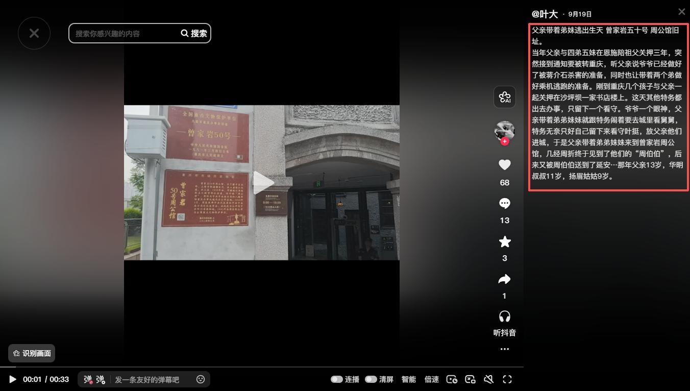 那天他去到了周公馆的旧址,面对这一重点文物触景生情,想起了小时候跟家人的难忘经历,值得一提的是,他的爷爷是一位了不起的大人物。