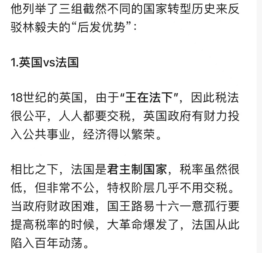 2002年,林杨之争正式拉开序幕。双方围绕后发国家发展路径展开了激烈辩论。杨小凯列举了英国与法国、北美与南美、日本与晚清三组对比案例,论证制度质量对经济发展的根本性影响。