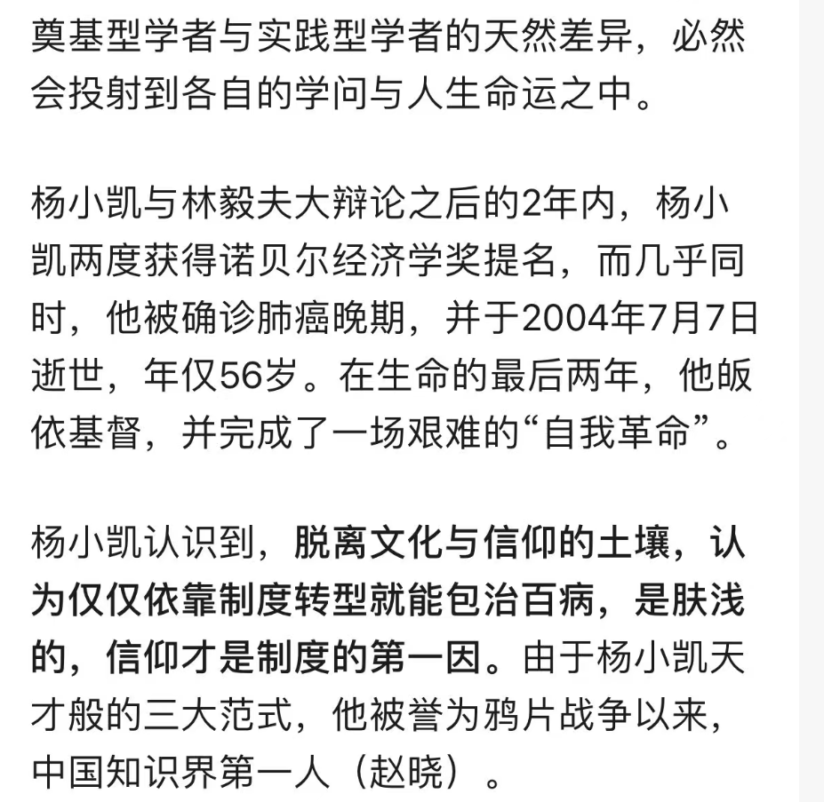 要理解这一观点,需从学者的分类谈起。林毅夫与杨小凯代表了两种截然不同的学术路径。