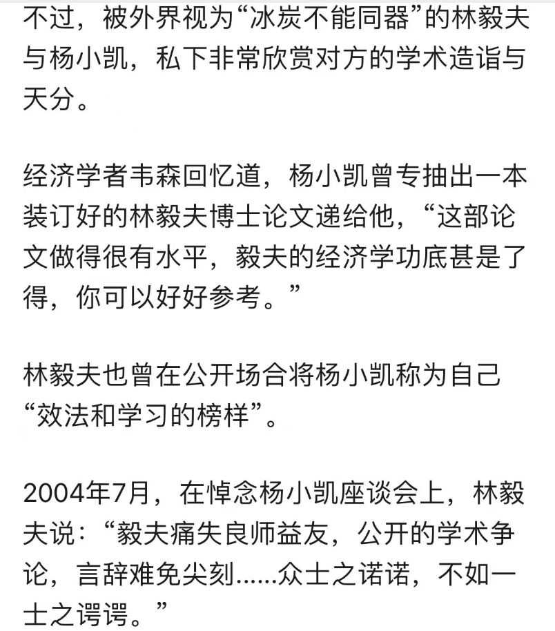 尽管学术观点迥异,林毅夫与杨小凯私下关系融洽,并未因学术争论影响个人交情。这种君子之争的风范,为中国学术界树立了良好典范。