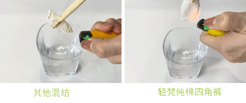 咱们7A原棉四角内裤,剪下一小块T恤面料进行燃烧测试: