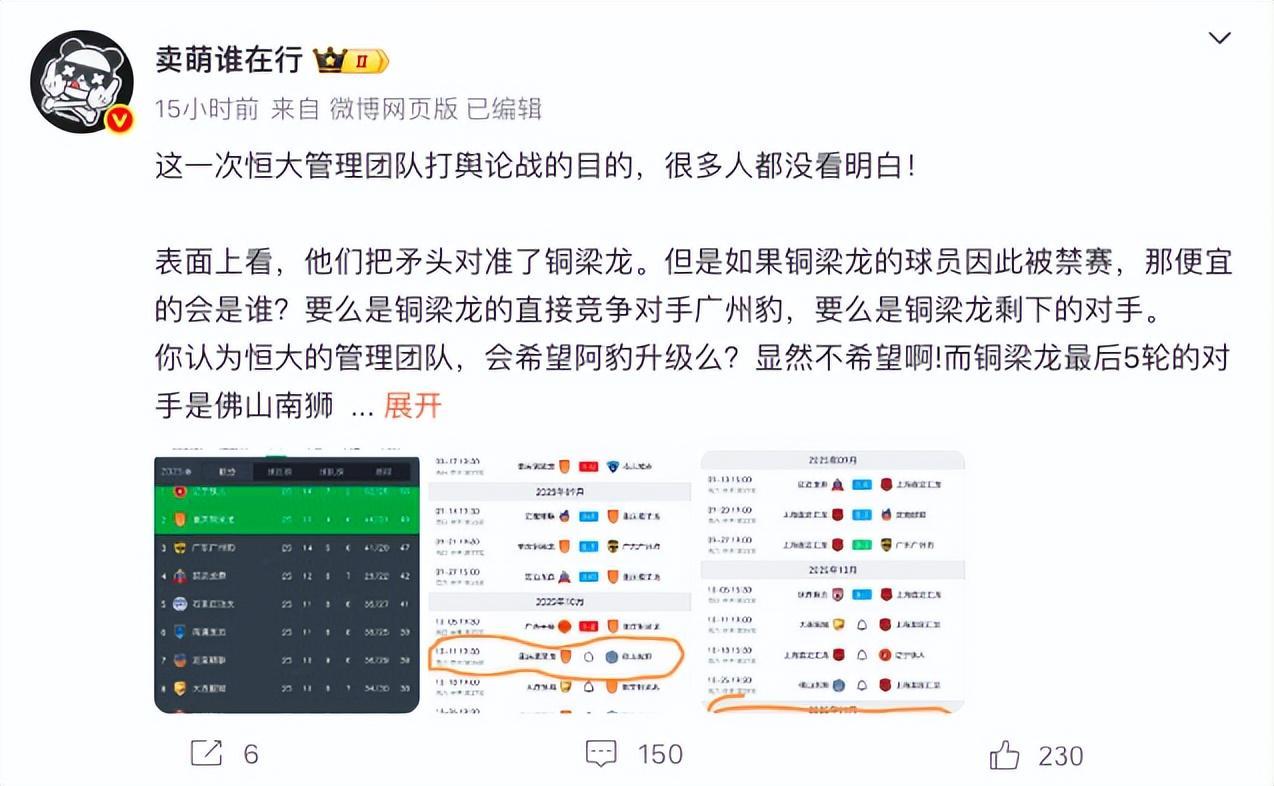 该博主进一步分析道:“这时候主动把外援有可能要高位截瘫的节奏带起来,引发轩然大波的同时,还把自家球员上抢导致自己重伤的内容加上去,强调自己有两个主力赛季报销,给自己添加一个受害者标签的目的,难道不是为了给联赛管理者施压,试图在最后几轮得到照顾么?”