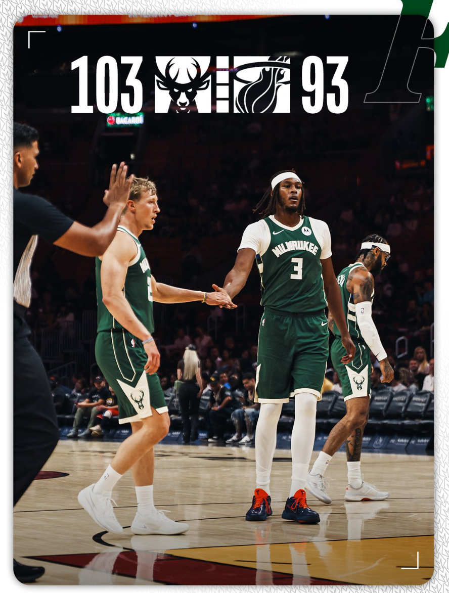 北京时间10月7日,NBA季前赛迎来一场焦点对决,雄鹿以103-93的比分大胜热火。本场比赛中,雄鹿核心扬尼斯仅参与了赛前的训练,并未出战;而热火的核心泰勒-希罗同样缺席。前三节比赛,两队打得难解难分,然而末节热火突然进攻断电,被雄鹿打出35-22的攻击波,最终吞下败果。