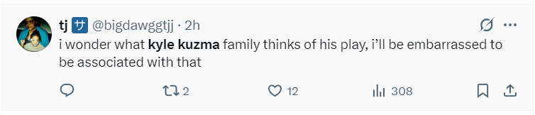更有球迷调侃道:“凯尔·库兹马1次6次失误?这简直太糟糕了,干脆把他买断算了。”还有球迷表示:“我真不知道库兹马的家人是如何看待他的?如果是我这样的表现,我会非常尴尬。”