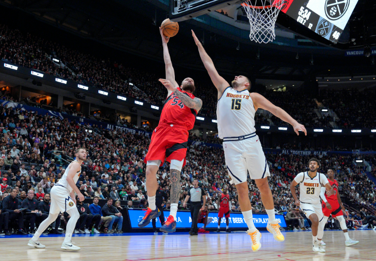 中场休息回来,约基奇、布劳恩与穆雷等主力继续登场,掘金队攻防两端均压制猛龙队,逐步扩大领先优势至76-62,并在第三节前5分钟保持80-64的领先。猛龙队在巴雷特与马穆凯拉什维利的内外开花引领下,回敬一波22-7的攻势,追到仅差1分。掘金队冲击内线打出7-2的攻势,三节结束时以94-88领先。前三节比赛,约基奇得到17分6篮板5助攻,引领掘金队4人得分上双;英格拉姆与巴雷特均得到19分,引领猛龙队3人得分上双。