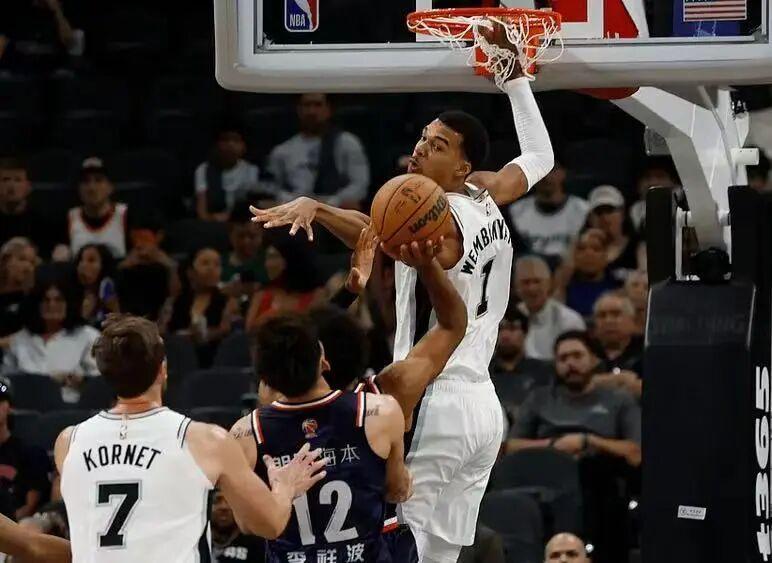 比赛刚开始,文班亚马就送出了一记钉板血帽,震慑住了对手。
