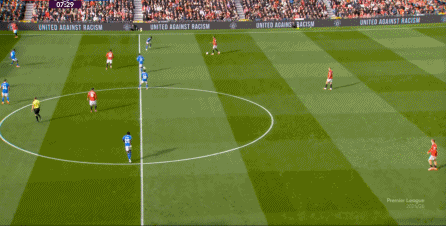 在这次5防3成功之后,曼联立刻就打出了反击,利用的其实就是阿玛德-迪亚洛这一点,只要摆脱掉对方防守意识可能不够的边锋球员,就会立刻进入到谁都管不到的空位里: