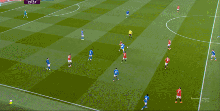 于是在第8分钟,曼联就再次利用到了343打四后卫球队的体系优势,阿玛德-迪亚洛进入空位得球: