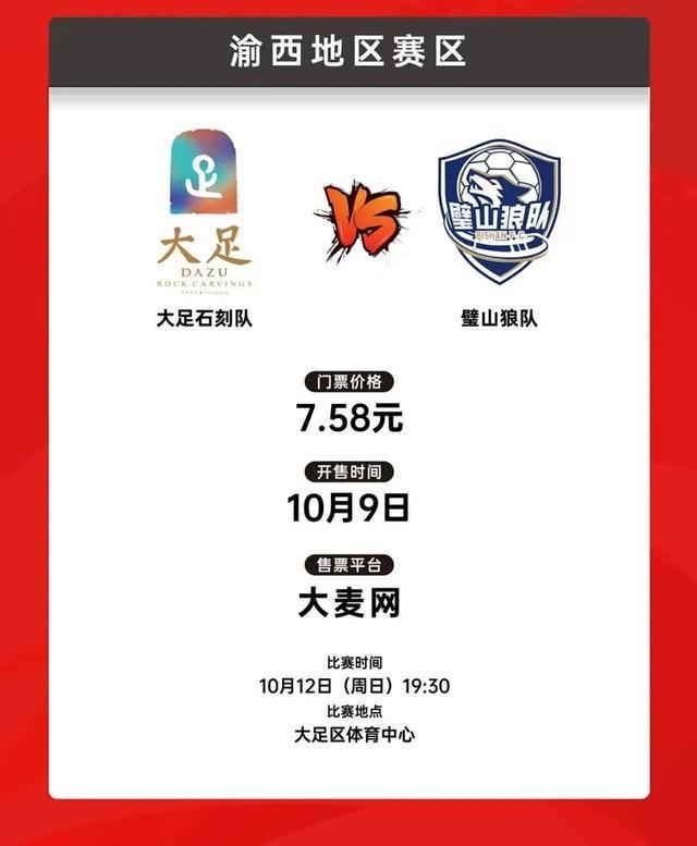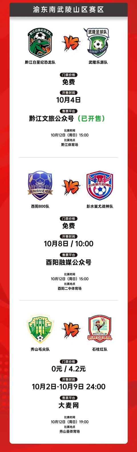 长假之后,“渝超”联赛仍将继续进行。10月12日各赛区球票详情如下: