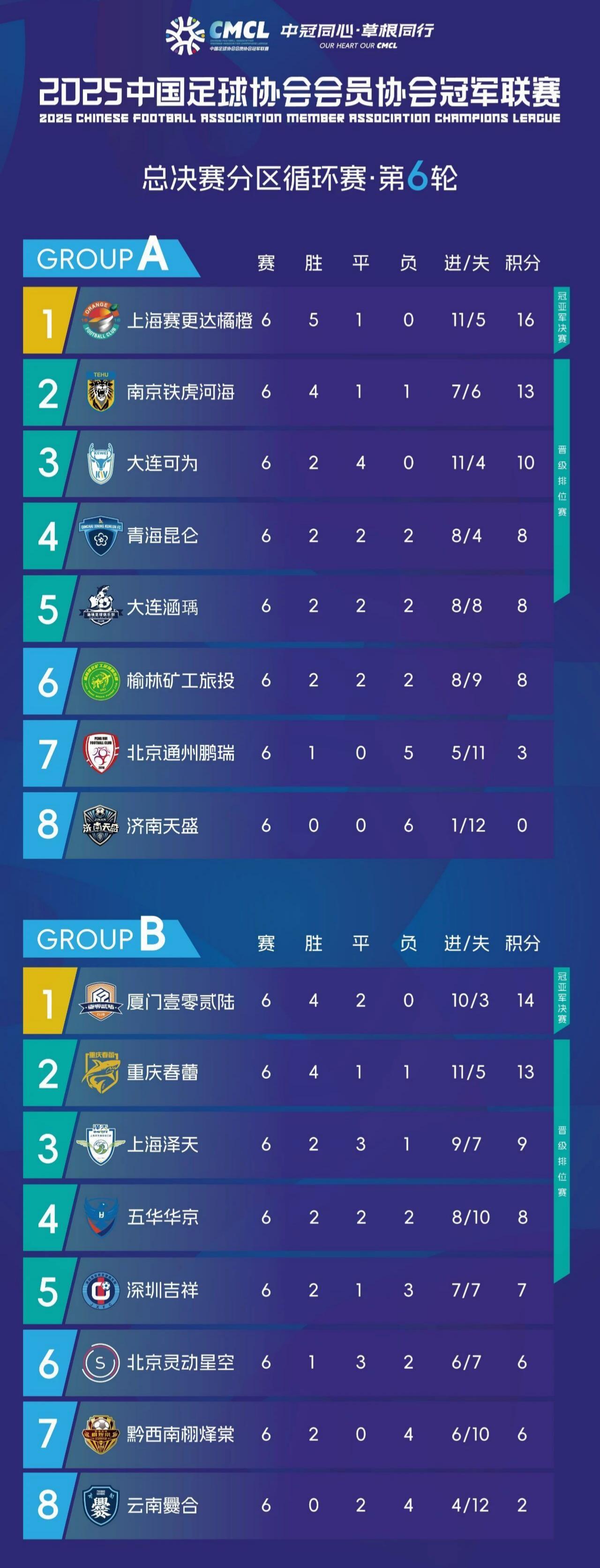 然而,就在泉州亚新降级后不久,福建足球迎来了好消息。征战2025中冠联赛的厦门壹零贰陆表现抢眼,不仅以大区赛不败战绩闯入总决赛,而且在总决赛分区循环赛6轮战罢后,依然保持不败,以4胜2平积14分的战绩领跑南区积分榜。